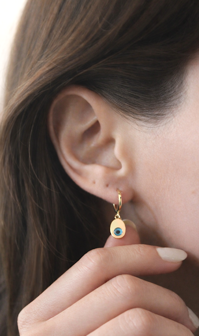 Nazar Boncuklu Altın Halka Küpe