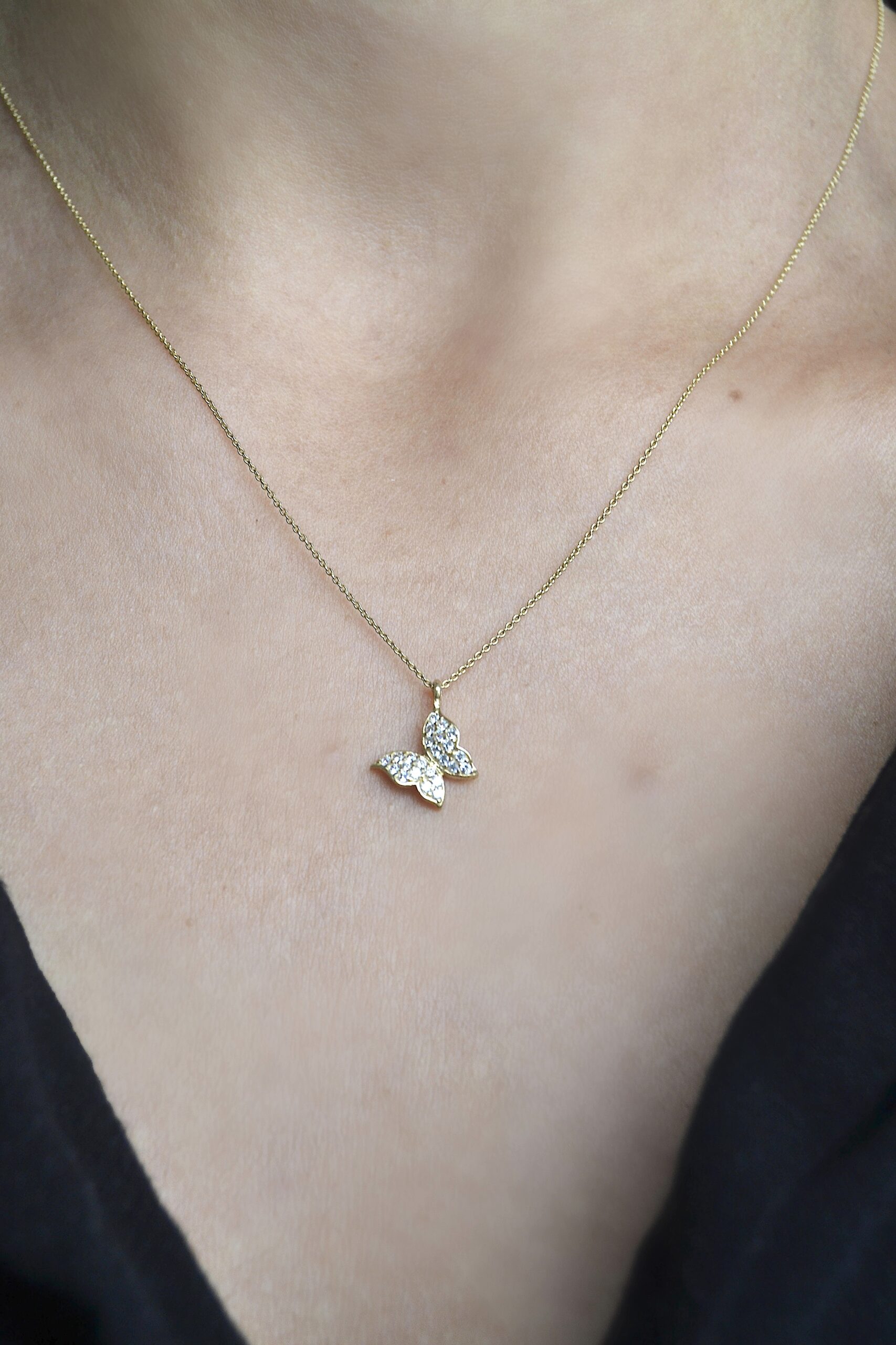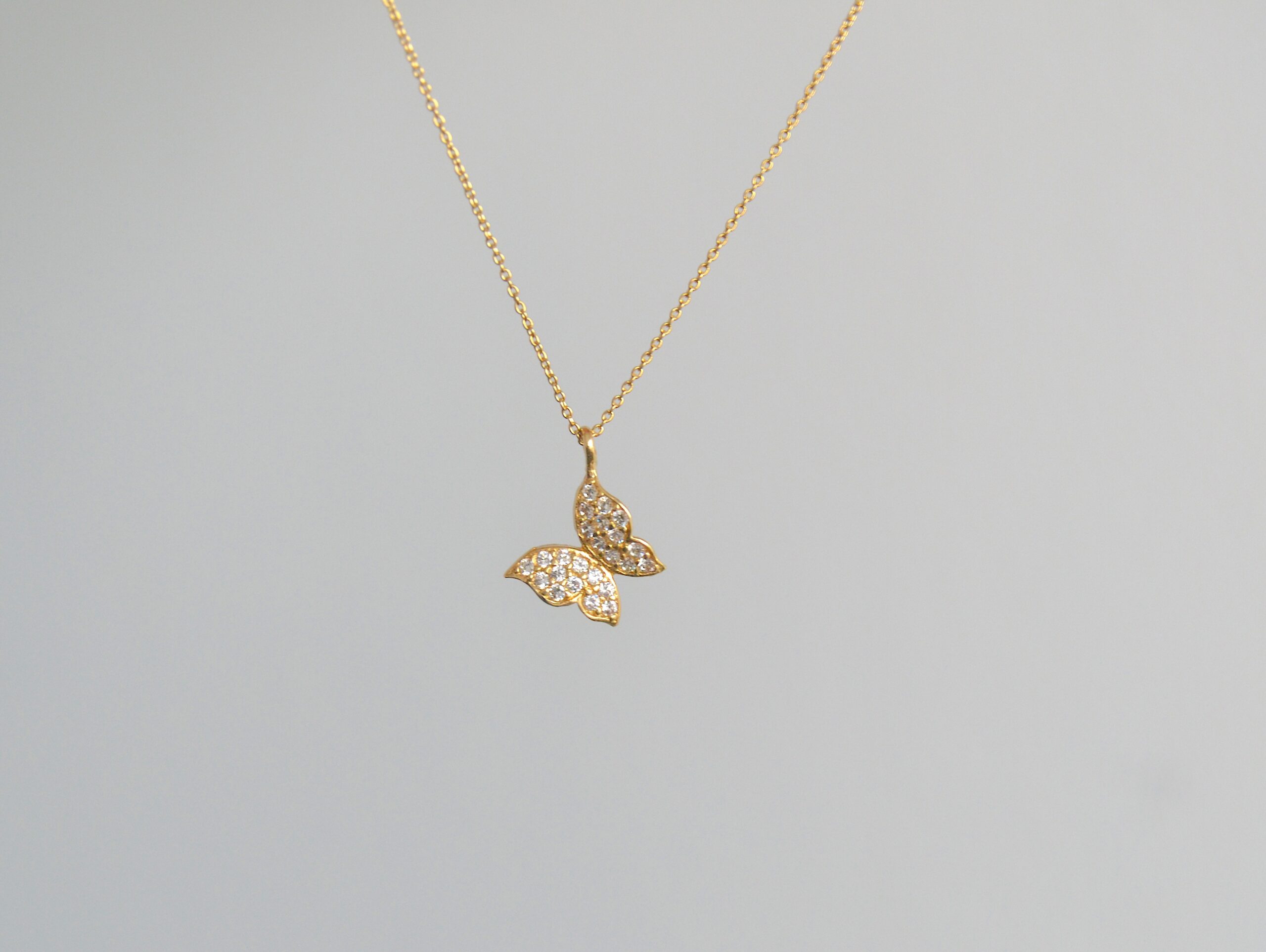 Taşlı Kelebek Motif Altın Kolye