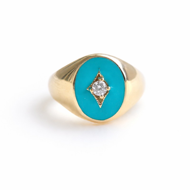 Taşlı Mavi Mineli Altın Yüzük